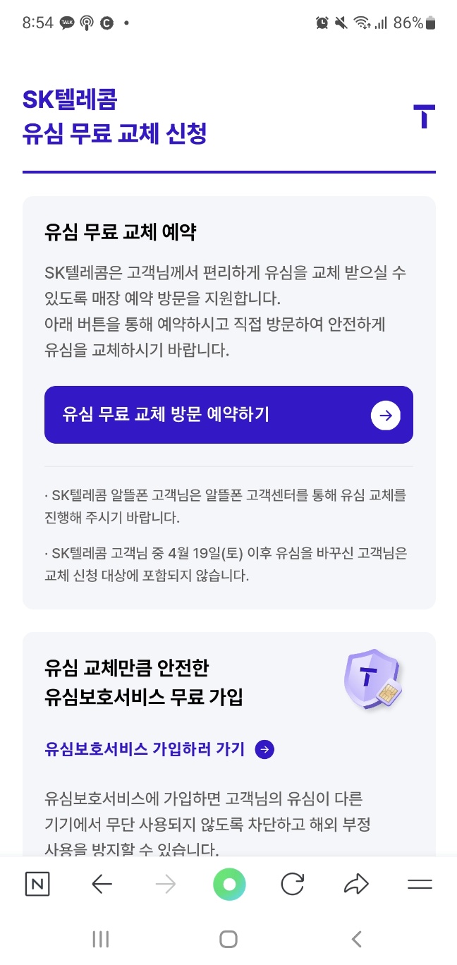 - 전 고객 대상 SKT 유심 무료 교체 실시