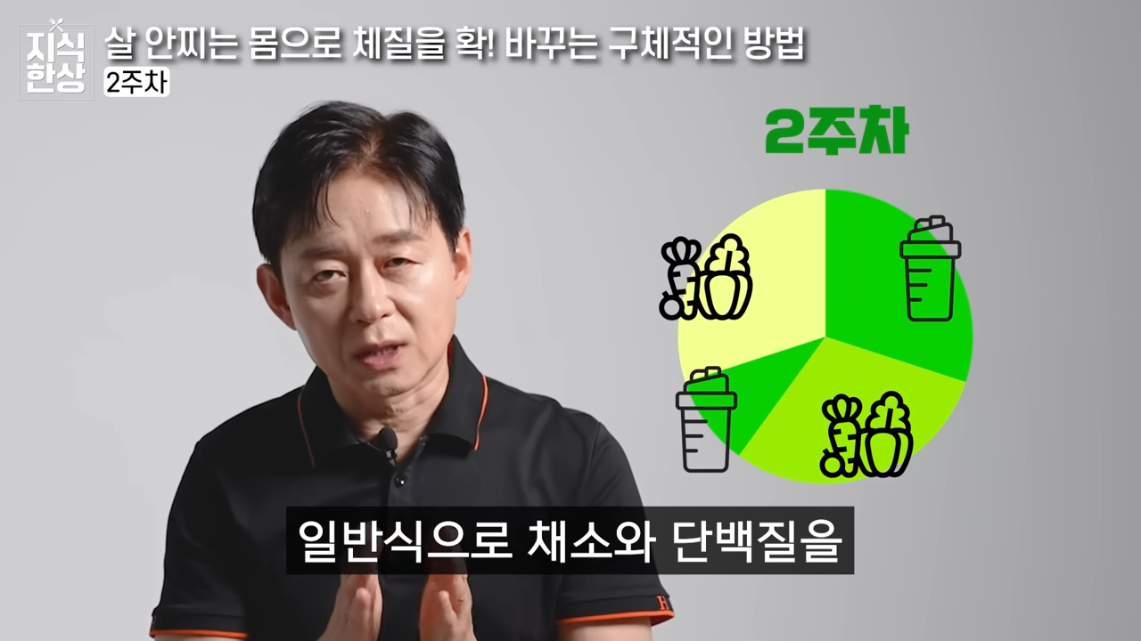 탄수화물을 줄이고 단백질 쉐이크를 통해 지방을 잘 쓰는 몸으로 바꾸는 것이 목표이다.
